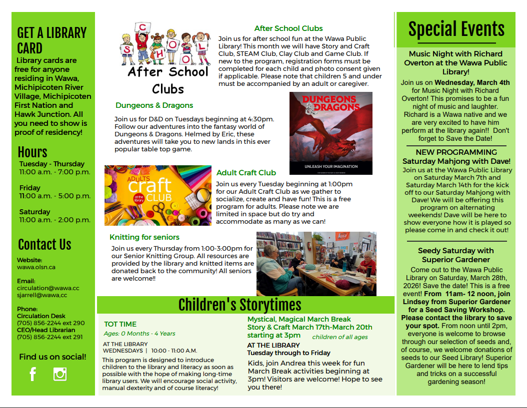 En février, les élèves de la 6ᵉ, 7ᵉ et 8ᵉ année de l’école Saint‑Joseph (Wawa) ont eu l’occasion d’explorer le magnifique paysage hivernal de leur communauté lors d’une randonnée en raquettes dans des sentiers enneigés. Équipés de leurs raquettes, les élèves ont pu profiter de l’air frais tout en découvrant l’une des nombreuses destinations de plein air de leur région. Cette sortie éducative a permis de promouvoir le bien‑être, l’activité physique et un mode de vie sain, en plus de créer des moments mémorables entre camarades de classe.
