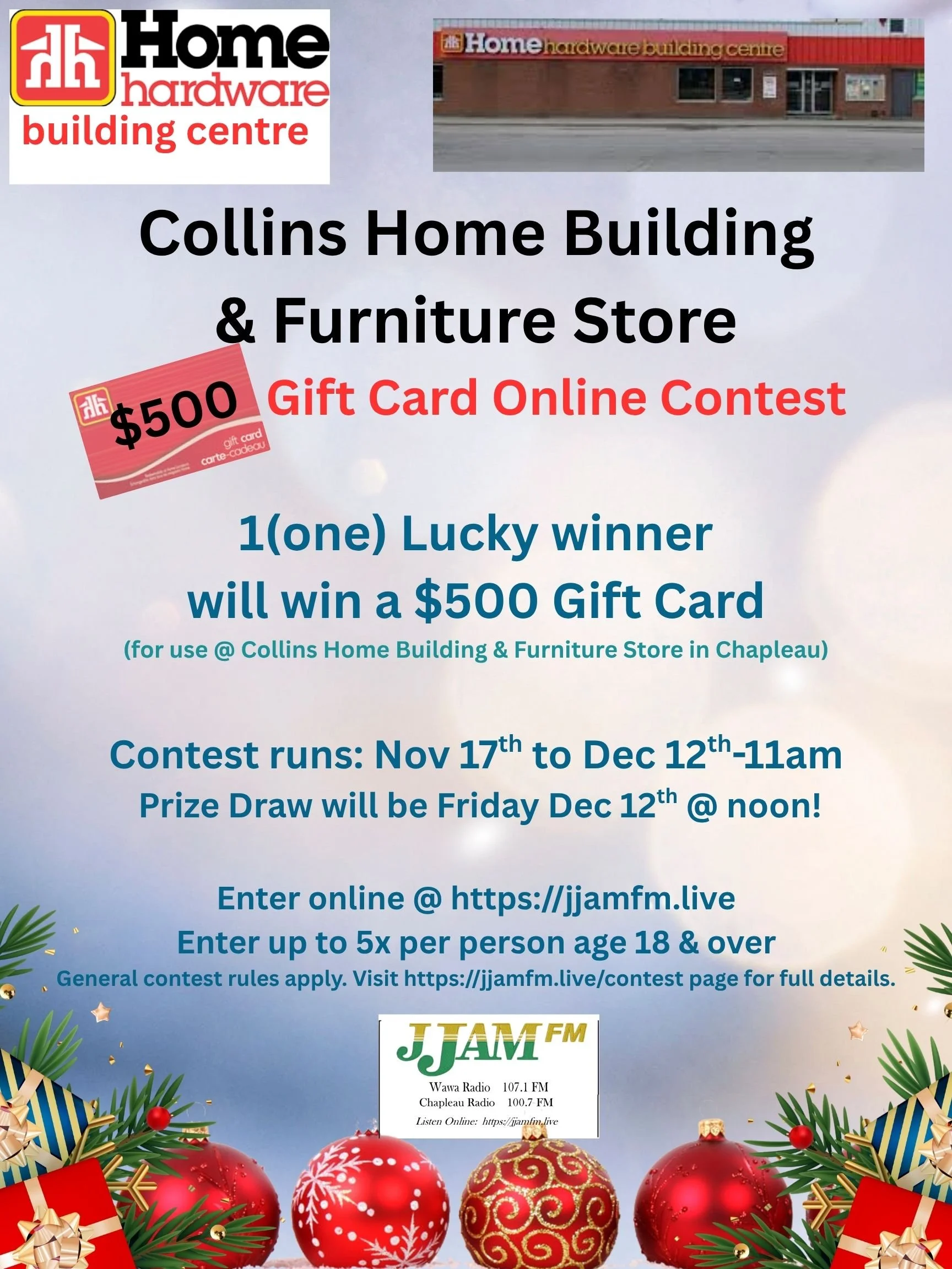 Winner is Eric Paquette- prize was drawn Dec 15 2023