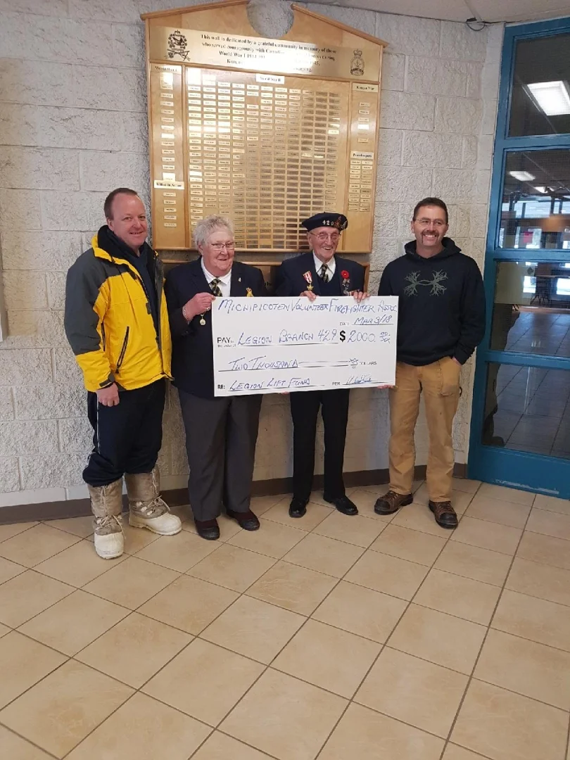 The second presentation of $2000.00 was made to the Legion Branch #429 from the Michipicoten Volunteer Firefighters Association.