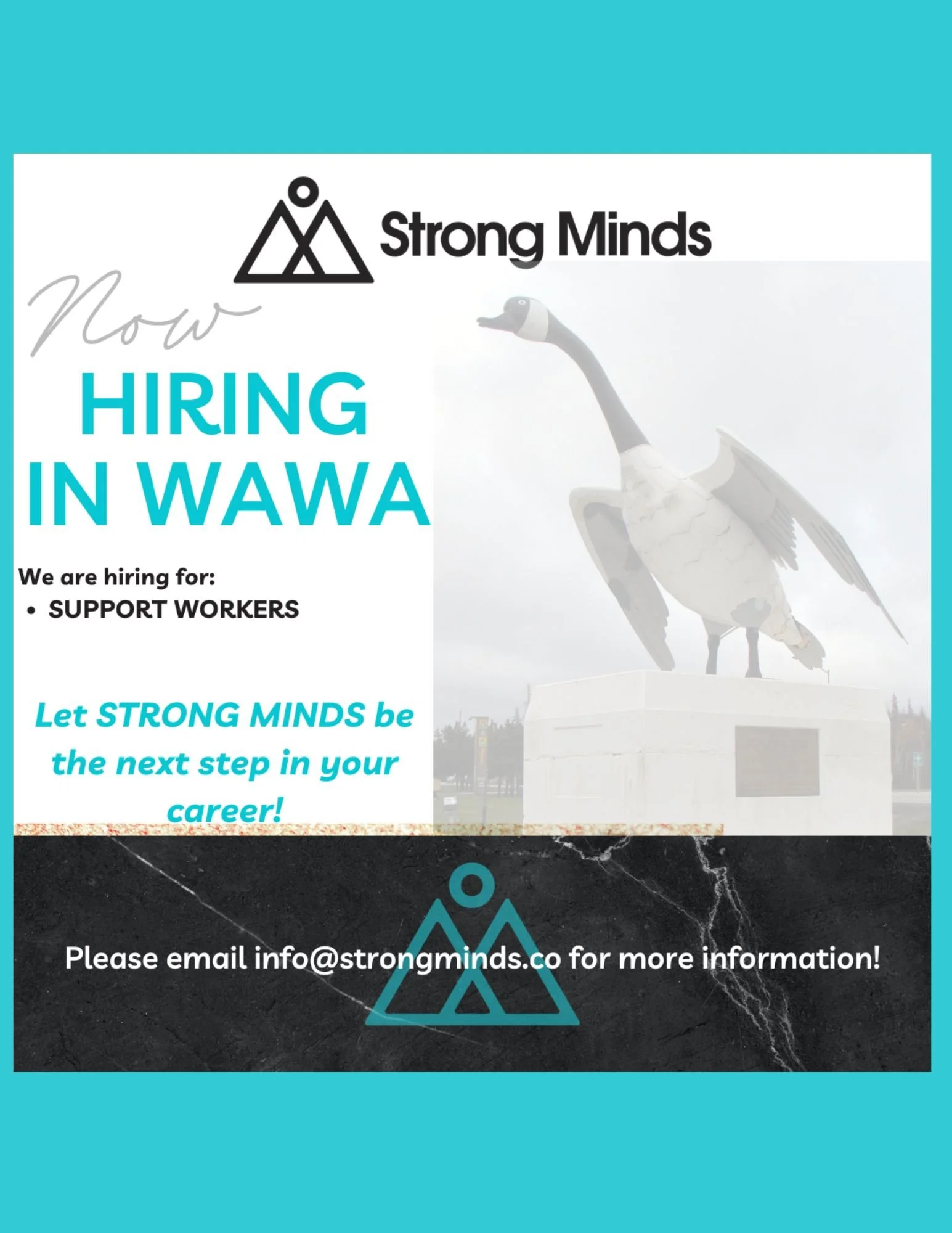 Support Workers are wanted by Strong Minds in Wawa. Email info@strongminds.co